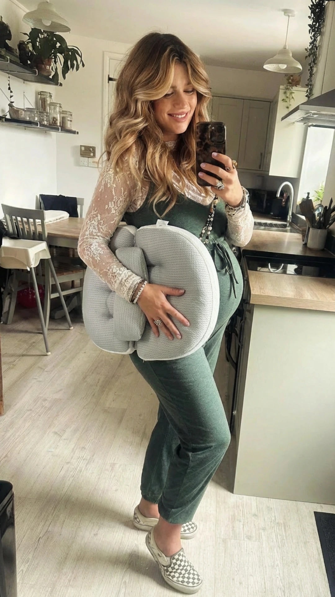 There’s also a small pillow that adds extra lift - under your bump, back, or knees.